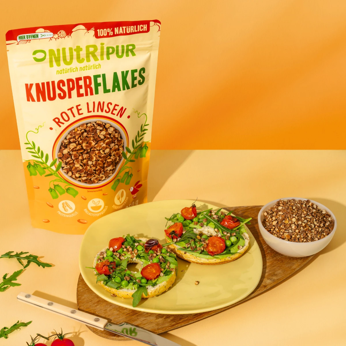 Gönn deinem Frühstück das gewisse Extra – mit unseren roten Linsen-Flakes als leckerem Crunch in deinem Müsli. Aber auch herzhaft machen sie Eindruck: Die gekeimten roten Linsen von NutriPur sind eine schmackhafte knusprige Zutat in Suppen, Salaten oder Eintöpfen. Damit holst du dir nicht nur extra Biss, sondern auch wertvolle Ballaststoffe und Proteine in jede Mahlzeit.
