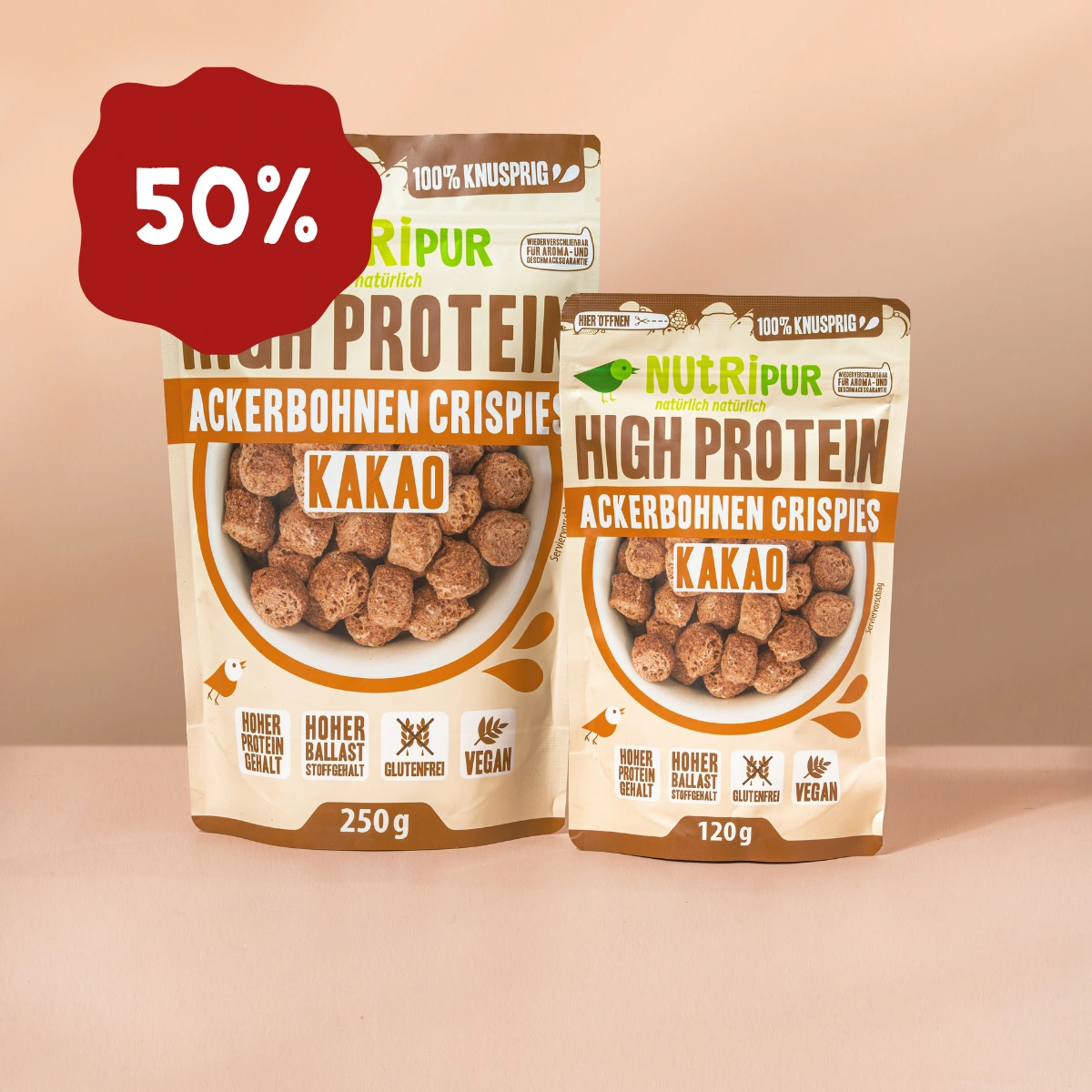 Suchst du nach einem süßen, proteinreichen Snack, der dich mit wichtigen Ballaststoffen versorgt und gleichzeitig köstlich schmeckt? Dann probiere jetzt die High Protein Ackerbohnen Crispies von NutriPur – der perfekte Snack für alle, die auf ihr Wohlbefinden achten und dabei nicht auf Genuss verzichten wollen. Für noch mehr Snackvielfalt teste unbedingt auch unsere Ackerbohnen Crispies Natur und Scharf!
